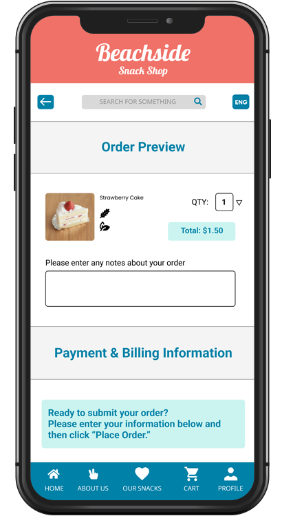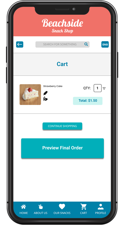 The Beachside Snack Shop low-fidelity prototype shows the primary user flow of the app I am building so that it could be used in a usability study with actual users.